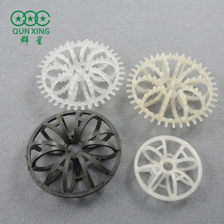 塑料花環(huán)填料主要利用其獨(dú)D特結(jié)構(gòu)形狀多分布點(diǎn)與接觸表面積,與廢氣或廢液呈點(diǎn)接觸,以去Q除氣體和液體中的微粒,吸收有害的腐蝕性氣體。使用時(shí)將液體或氣體反方向道入填料填充床內(nèi),氣體經(jīng)過(guò)分配板,將氣體平均分布于球狀填料中,每只呈點(diǎn)接觸,利用接觸的表面積,除氣體和液體中的微粒吸收有害的氣體。這種填料是由許多圓環(huán)結(jié)繞而成,由于填料的空隙處能有較高的持液量,可使塔內(nèi)液體的停留時(shí)間較長(zhǎng),從而增加了氣液兩相的接觸時(shí)間,提高了填料的傳質(zhì)效率。